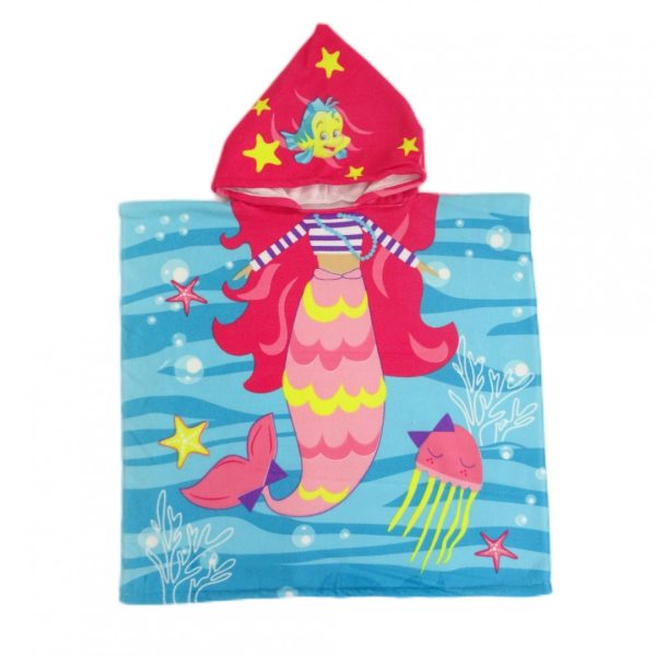 Prosop de Plaja Copii Poncho, Pink Mermaid, 60 x 120cm, Densitate 220g/m² – Heinner – HR-PNCHO120-PSO