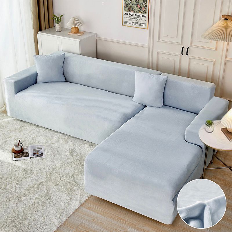 Set 2 Huse Elastice pentru Coltar din Catifea, 2+3 Locuri(M+L) + 2 Fete de Perna – Arctic White – PUF73277
