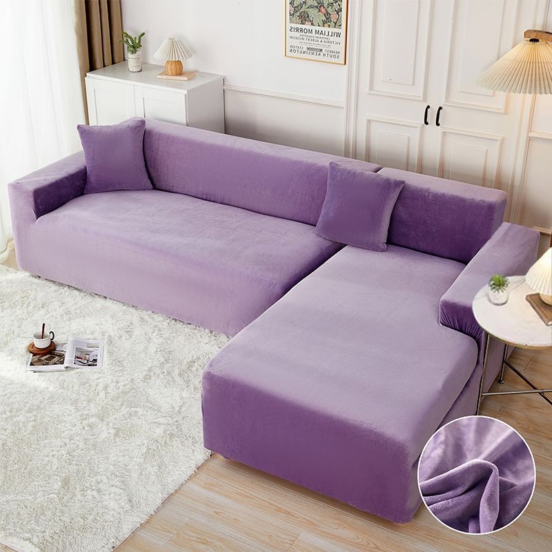Set 2 Huse Elastice pentru Coltar din Catifea, 2+3 Locuri(M+L) + 2 Fete de Perna – Mov – PUF73279