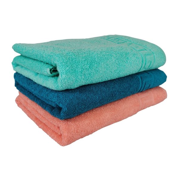 Un set de prosoape de baie mari deosebite, model grecesc(greek border) cu fir dublu rasucit, care confera o densitate si rezistenta sporita in timp; aceste calitati recomandanda produsele pentru utilizari frecvente si spalari dese, daca e necesar, chiar la temperaturi ridicate, fara a afecta calitatea sau culorile prosoapelor. Textura placuta la atingere si culoarea pot fi pastrate pentru mult timp, fara a necesita tratamente speciale, chiar si acasa, cu spalare la masina de spalat. Prosoapele sunt produse dintr-un bumbac de cea mai buna calitate, in gramaj mare.
