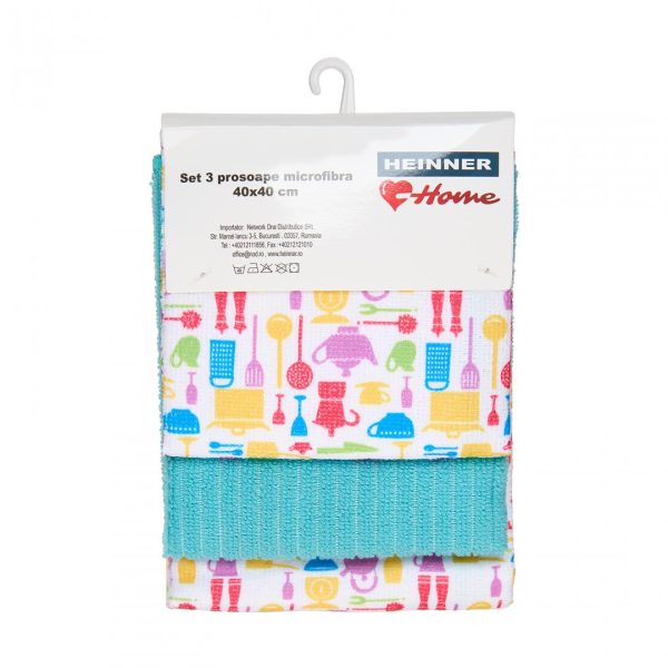 Set 3 Prosoape Microfibra, Model Kitchen, 40x40cm – Heinner – HR-3TWL40-KTN