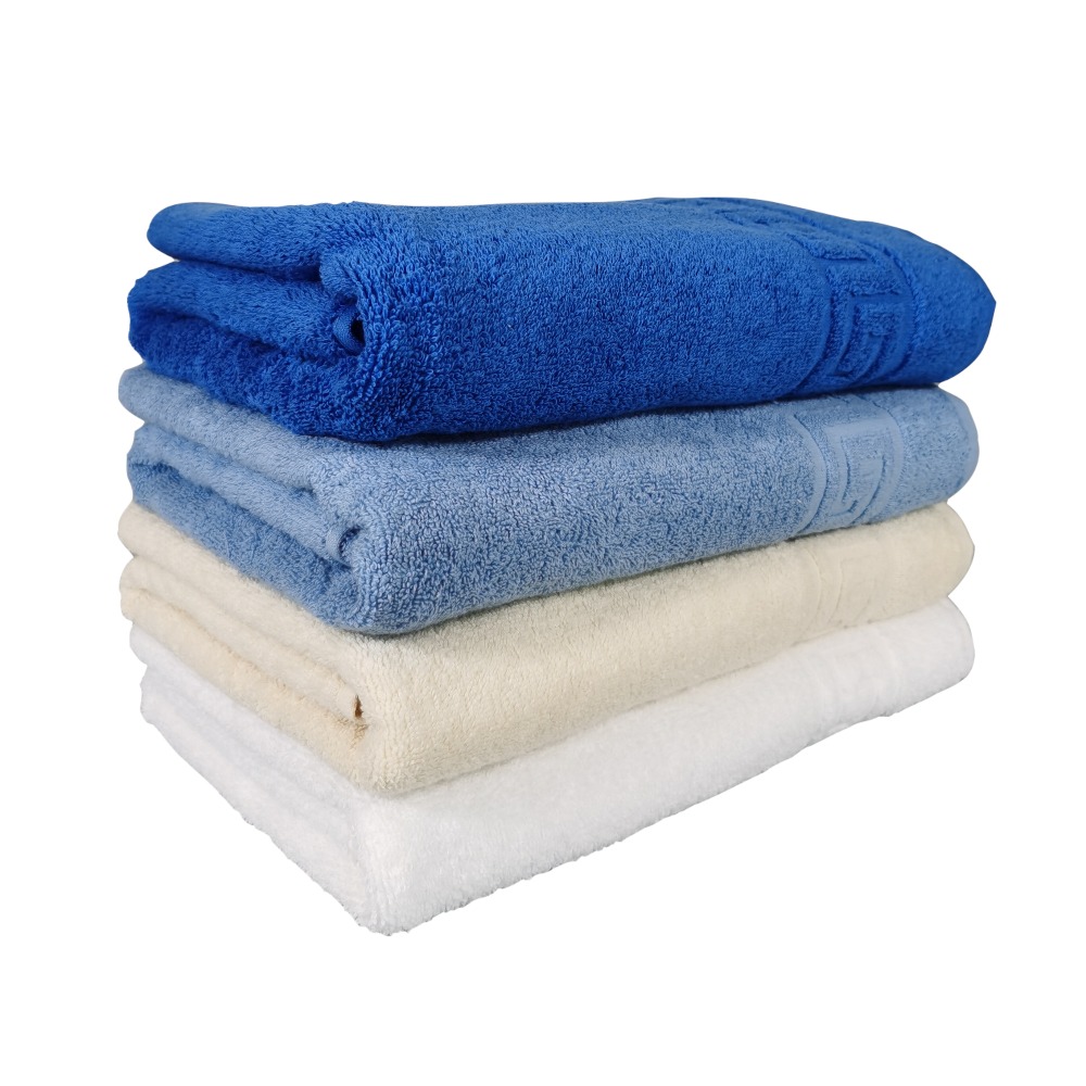 Un set de prosoape de baie mari deosebite, model grecesc(greek border) cu fir dublu rasucit, care confera o densitate si rezistenta sporita in timp; aceste calitati recomandanda produsele pentru utilizari frecvente si spalari dese, daca e necesar, chiar la temperaturi ridicate, fara a afecta calitatea sau culorile prosoapelor. Textura placuta la atingere si culoarea pot fi pastrate pentru mult timp, fara a necesita tratamente speciale, chiar si acasa, cu spalare la masina de spalat. Prosoapele sunt produse dintr-un bumbac de cea mai buna calitate, in gramaj mare.