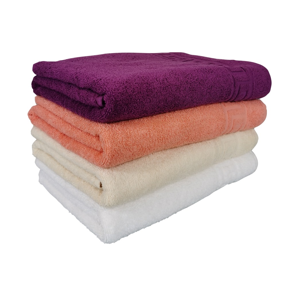 Un set de prosoape de baie mari deosebite, model grecesc(greek border) cu fir dublu rasucit, care confera o densitate si rezistenta sporita in timp; aceste calitati recomandanda produsele pentru utilizari frecvente si spalari dese, daca e necesar, chiar la temperaturi ridicate, fara a afecta calitatea sau culorile prosoapelor. Textura placuta la atingere si culoarea pot fi pastrate pentru mult timp, fara a necesita tratamente speciale, chiar si acasa, cu spalare la masina de spalat. Prosoapele sunt produse dintr-un bumbac de cea mai buna calitate, in gramaj mare.