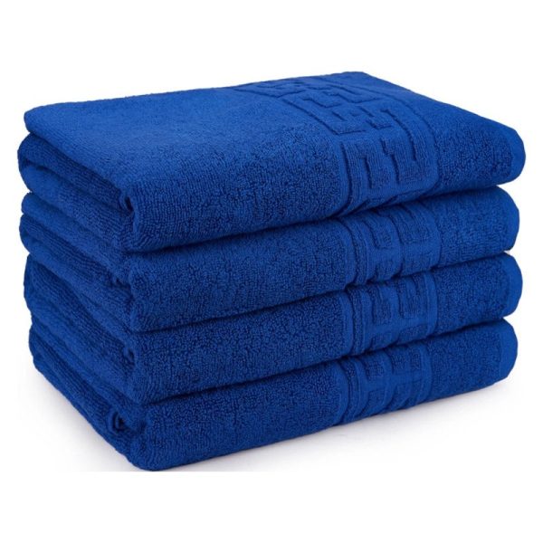 Set 4 Prosoape Model Grecesc, 70x140cm, Bumbac 100%, Densitate 500g/m² – Albastru – PUF18652
