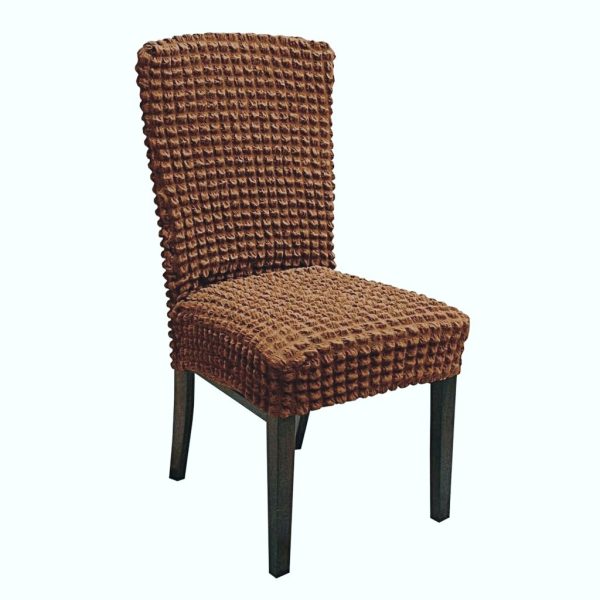 Set 6 Huse de Scaun Creponate, Fara Volanase, Marime Universala – Cappuccino – PUF17899-219