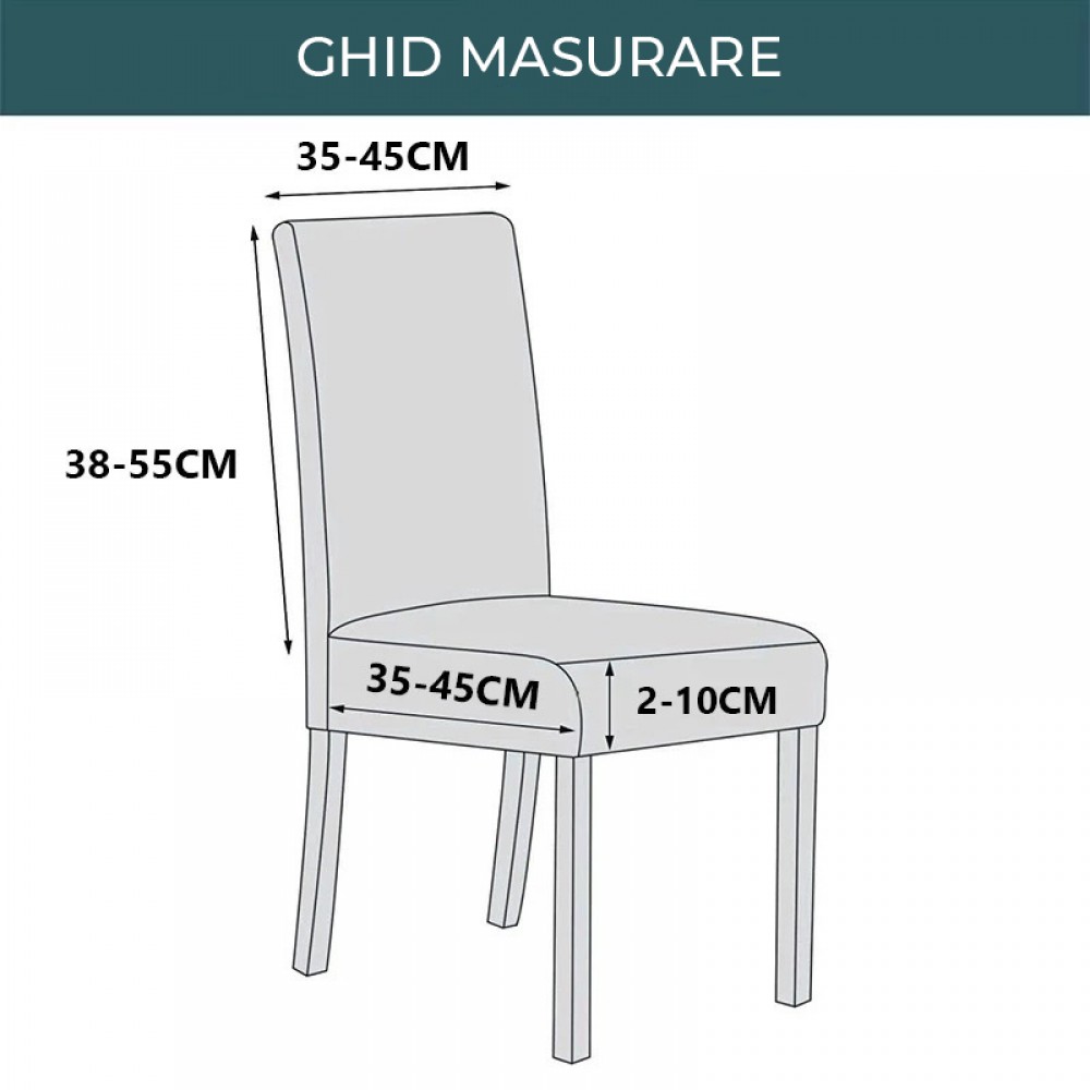 Se monteaza usor, in maxim 30 de secunde, materialul mulandu-se perfect pe orice scaun cu spatar drept. Nu este necesara spalarea manuala, aceste huse de scaune avand un avantaj considerabil la nivel de intretinere, curatarea realizandu-se cu ajutorul masinii de spalat rufe ori de cate ori este nevoie.