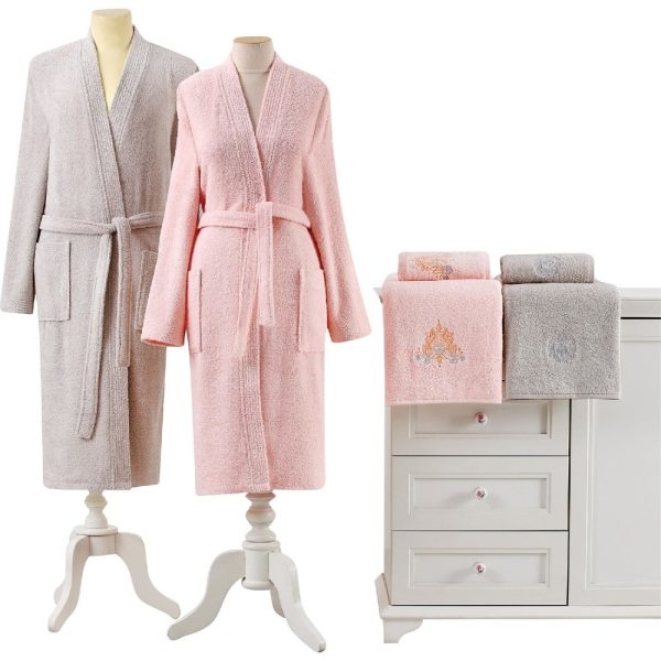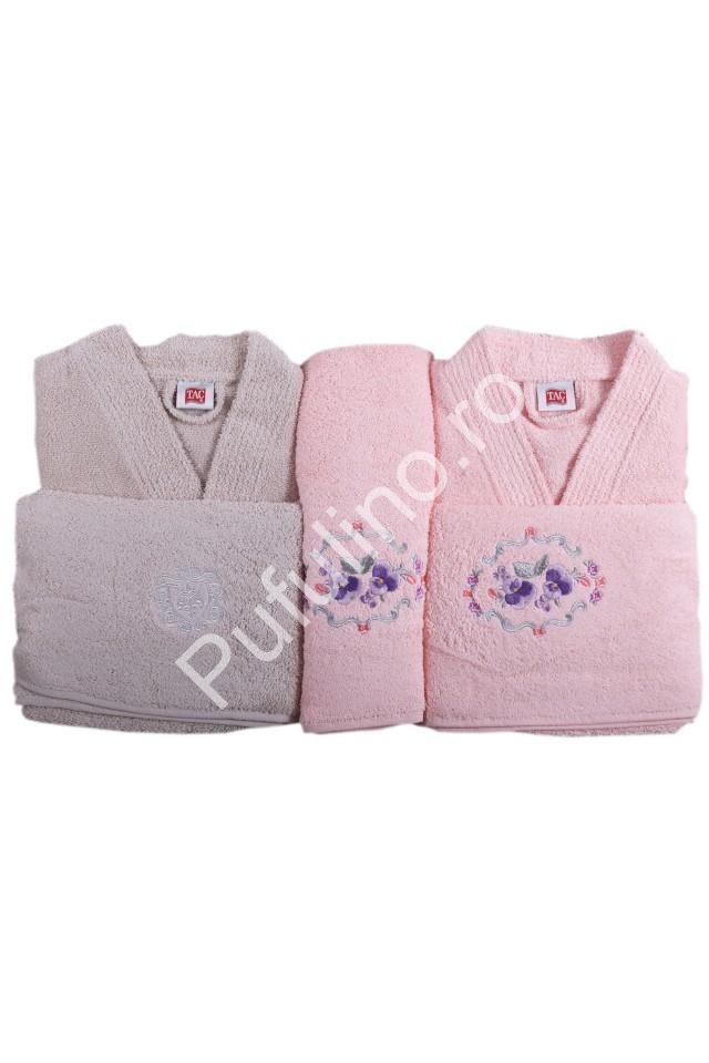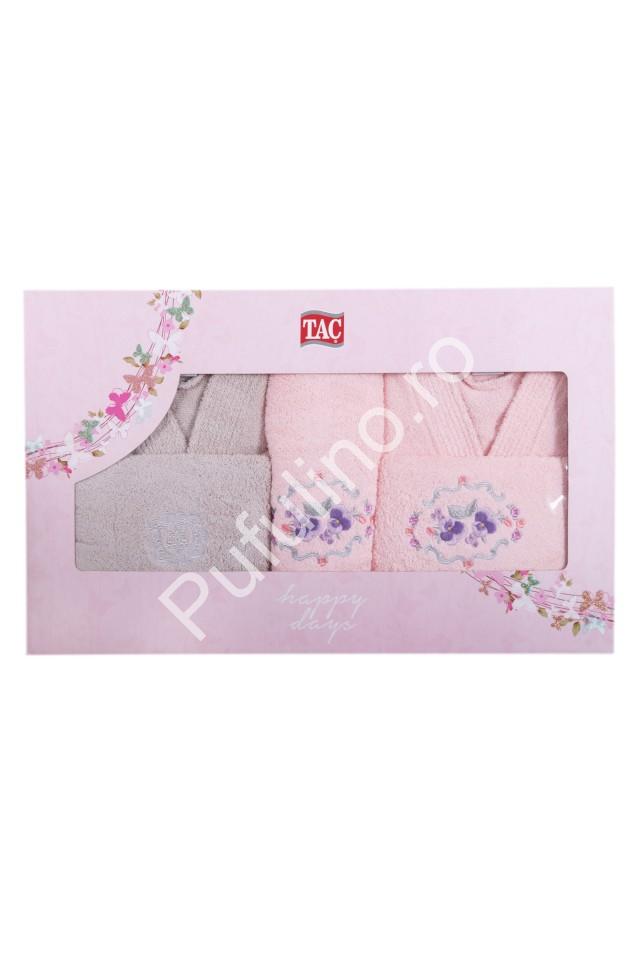 2 recenzii pentru Set Cadou 6 Piese: 2 Halate Baie + 2 Prosoape Mici + 2 Prosoape Mari, Bumbac 100%, Crem & Roz – TAC – PUF5594