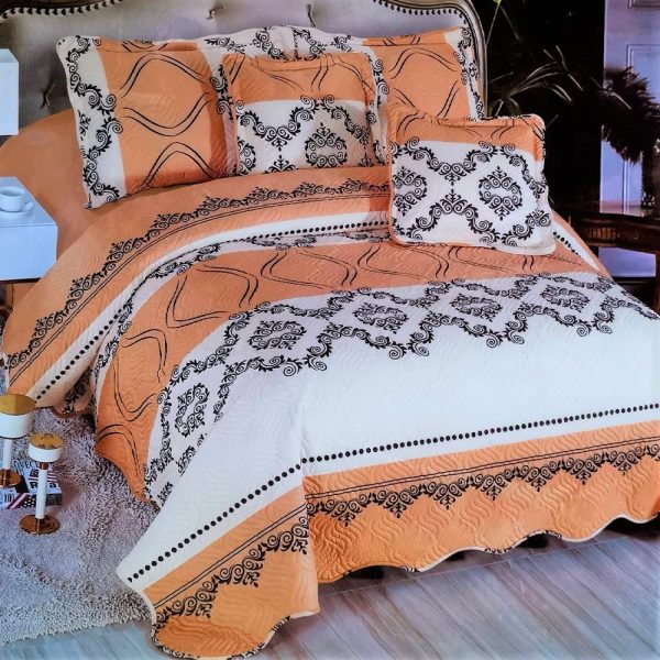 Cuvertura de pat + 4 fete de perne confectionate din bumbac. Cuverturile de pat sunt potrivite pentru orice anotimp. Totodata, ele adauga un plus de unicitate dormitorului tau prin imprimeul deosebit. Imprimeul acestui set (cuvertura pat plus fete de perna) este realizat cu cele mai noi tehnologii – garantat nu se decoloreaza daca se respecta instructiunile de intretinere. Setul vine ambalat in husa de plastic – poate fi folosita ca husa pentru depozitare.