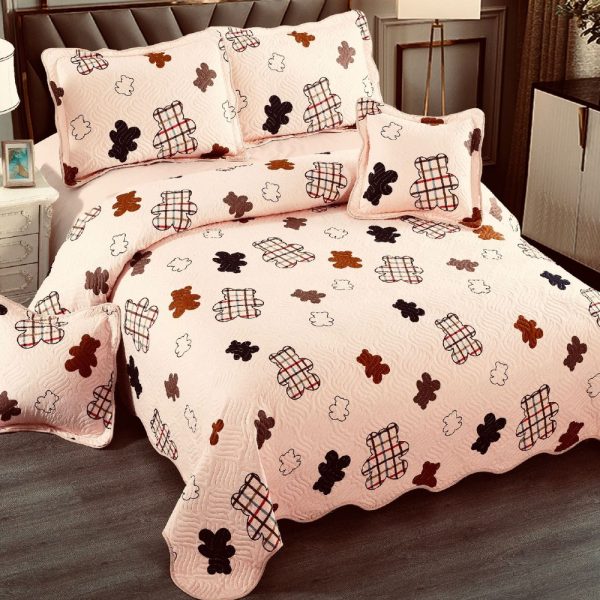 Cuvertura de pat + 4 fete de perne confectionate din bumbac. Cuverturile de pat sunt potrivite pentru orice anotimp. Totodata, ele adauga un plus de unicitate dormitorului tau prin imprimeul deosebit. Imprimeul acestui set (cuvertura pat plus fete de perna) este realizat cu cele mai noi tehnologii – garantat nu se decoloreaza daca se respecta instructiunile de intretinere. Setul vine ambalat in husa de plastic – poate fi folosita ca husa pentru depozitare.