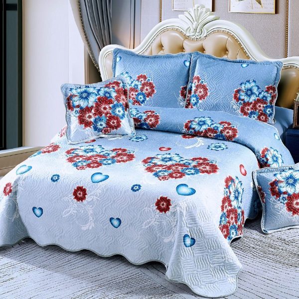 Cuvertura de pat + 4 fete de perne confectionate din bumbac. Cuverturile de pat sunt potrivite pentru orice anotimp. Totodata, ele adauga un plus de unicitate dormitorului tau prin imprimeul deosebit. Imprimeul acestui set (cuvertura pat plus fete de perna) este realizat cu cele mai noi tehnologii – garantat nu se decoloreaza daca se respecta instructiunile de intretinere. Setul vine ambalat in husa de plastic – poate fi folosita ca husa pentru depozitare.