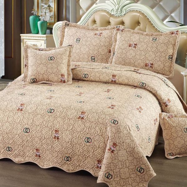 Cuvertura de pat + 4 fete de perne confectionate din bumbac. Cuverturile de pat sunt potrivite pentru orice anotimp. Totodata, ele adauga un plus de unicitate dormitorului tau prin imprimeul deosebit. Imprimeul acestui set (cuvertura pat plus fete de perna) este realizat cu cele mai noi tehnologii – garantat nu se decoloreaza daca se respecta instructiunile de intretinere. Setul vine ambalat in husa de plastic – poate fi folosita ca husa pentru depozitare.