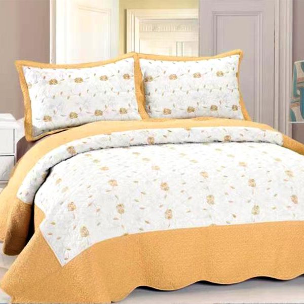 Set Cuvertura de Pat Alb cu Bej, 3 Piese, Pat 2 Persoane, 230×250 Cm – Fashion Casa – PUF13027