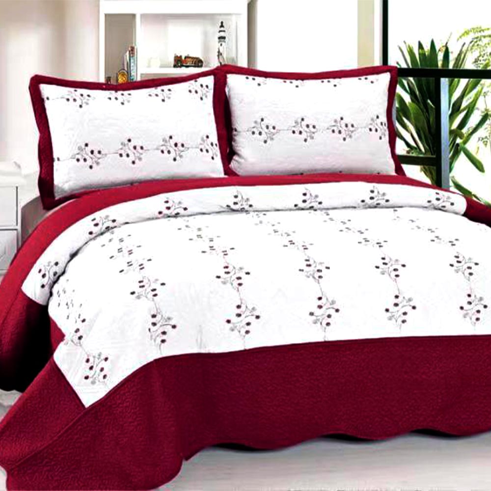 Set Cuvertura de Pat Alb cu Grena, 3 Piese, Pat 2 Persoane, 230×250 Cm - Fashion Casa - PUF13025