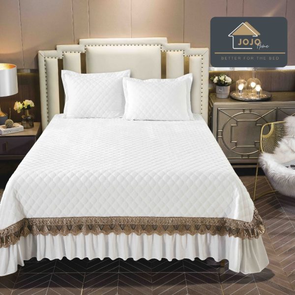 Set Cuvertura de Pat din Catifea cu Broderie, 3 Piese, 230×250cm, JoJo Home – Alb – PUF92720