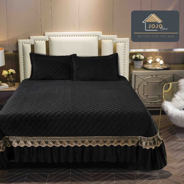 Set Cuvertura de Pat din Catifea cu Broderie, 3 Piese, 230×250cm, JoJo Home – Negru – PUF92711