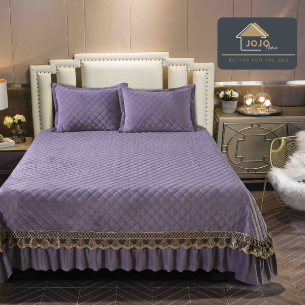 Set Cuvertura de Pat din Catifea cu Broderie, 3 Piese, 230×250cm, JoJo Home – Violet – PUF92710