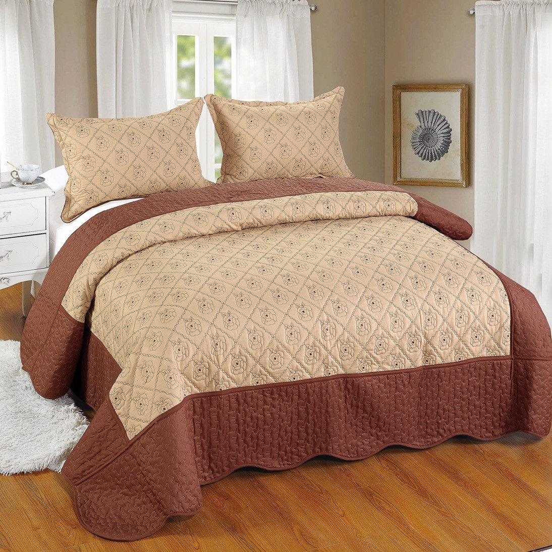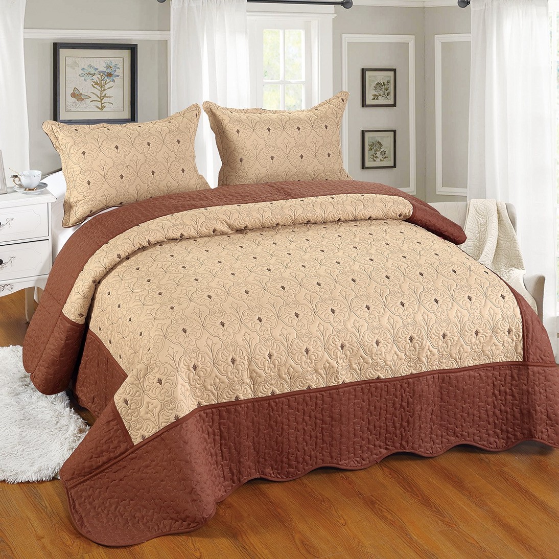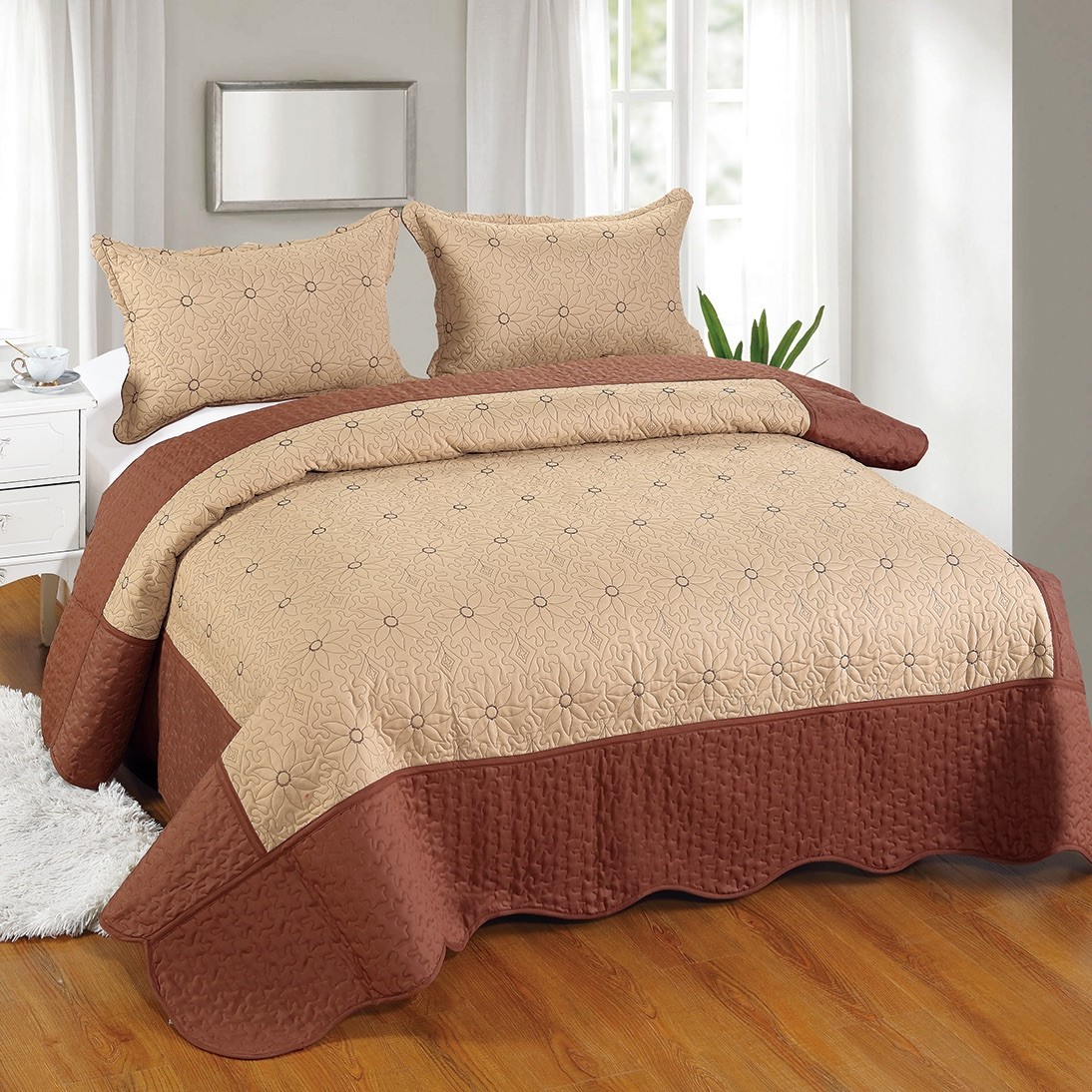 Set Cuvertura de Pat Crem & Maro deschis, 3 Piese, Pat 2 Persoane, 230×250 Cm – Fashion Casa – PUF13043