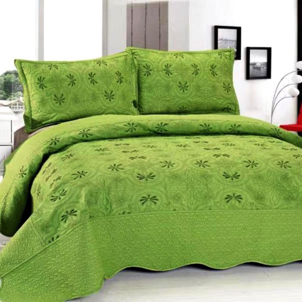 Set Cuvertura de Pat Verde, 3 Piese, Pat 2 Persoane, 230×250 Cm – Fashion Casa – PUF13035