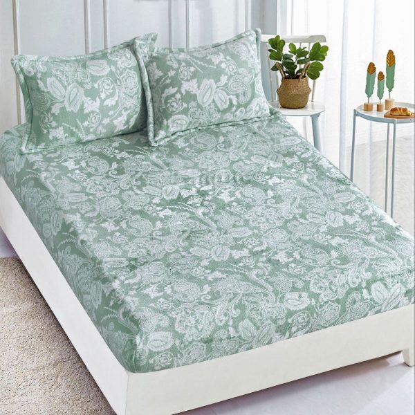 Set Husa de Pat Cocolino cu Elastic + 2 Fete de Perna, Pat 2 Persoane – Mint Green – JoJo Home – PUF139243