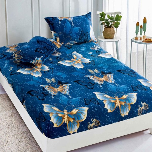 Set Husa de Pat Cocolino cu Elastic + 2 Fete de Perna, Pat 2 Persoane – Royal Butterflies – JoJo Home – PUF70294