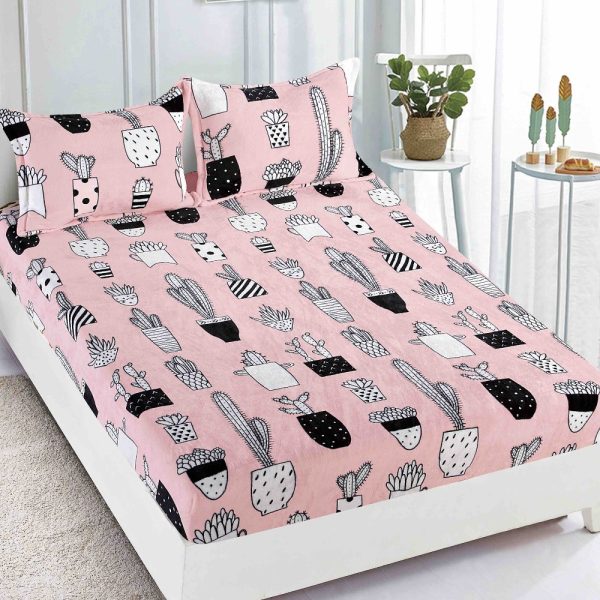 Set Husa de Pat Cocolino cu Elastic + 2 Fete de Perna, Pat 2 Persoane – Pink Cactus – JoJo Home – PUF77721
