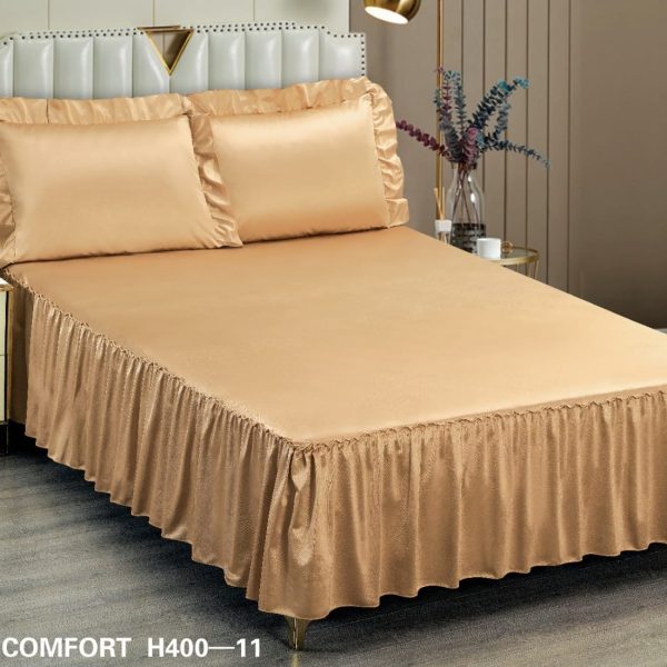 Set Husa de Pat Uni cu Volanase + 2 Fete Perna, Pat 2 Persoane – East Comfort – PUF58035-H400-11