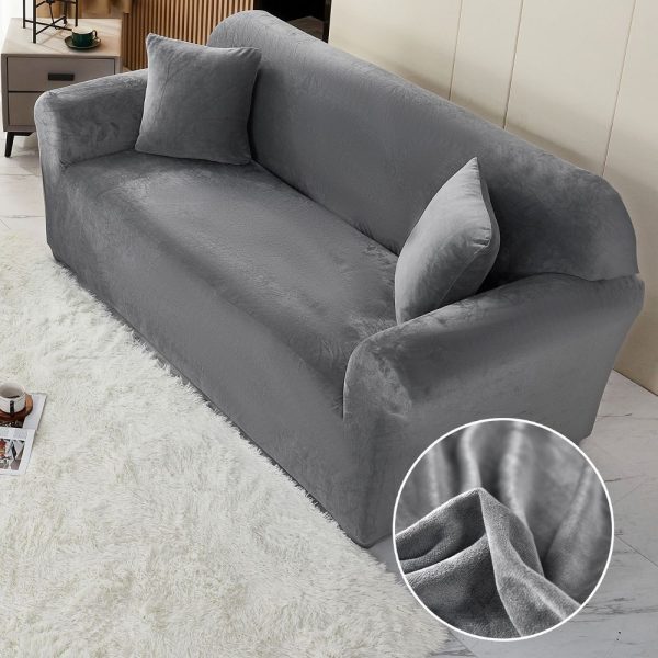 Set Husa Elastica din Catifea pentru Canapea 3 Locuri + Fata de Perna - Gri Inchis - PUF73261