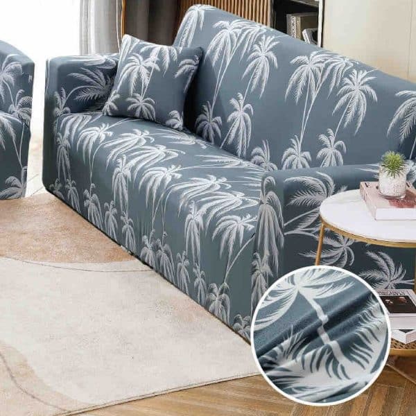 Set Husa Elastica pentru Canapea 2 Locuri + Fata de Perna – Palm Trees – PUF97274-224