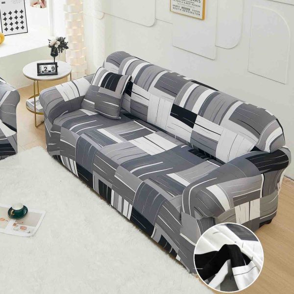 Set Husa Elastica pentru Canapea 3 Locuri + Fata de Perna – Abstract Grey – PUF97357-333