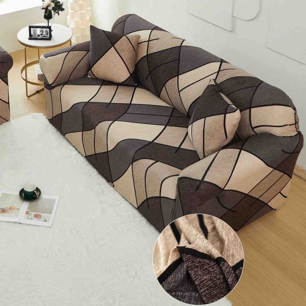 Set Husa Elastica pentru Canapea 3 Locuri + Fata de Perna – Brown Triangles – PUF97347-330