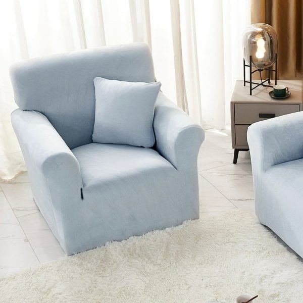 Set Husa Elastica pentru Fotoliu din Catifea + Fata de Perna, Marime Universala – Actic White – PUF73193