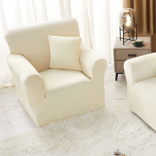 Set Husa Elastica pentru Fotoliu din Catifea + Fata de Perna, Marime Universala – Crem – PUF73189