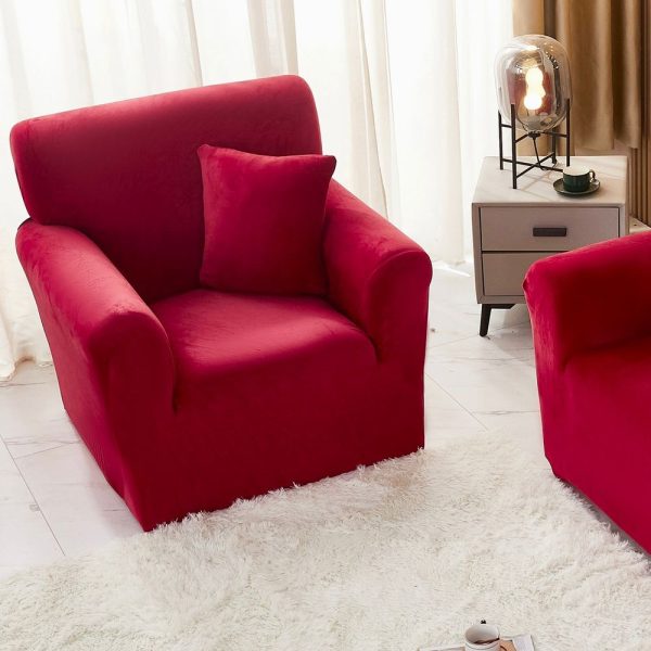 Set Husa Elastica pentru Fotoliu din Catifea + Fata de Perna, Marime Universala - Grena - PUF73190