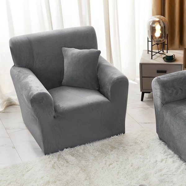 Set Husa Elastica pentru Fotoliu din Catifea + Fata de Perna, Marime Universala – Gri Inchis – PUF73192