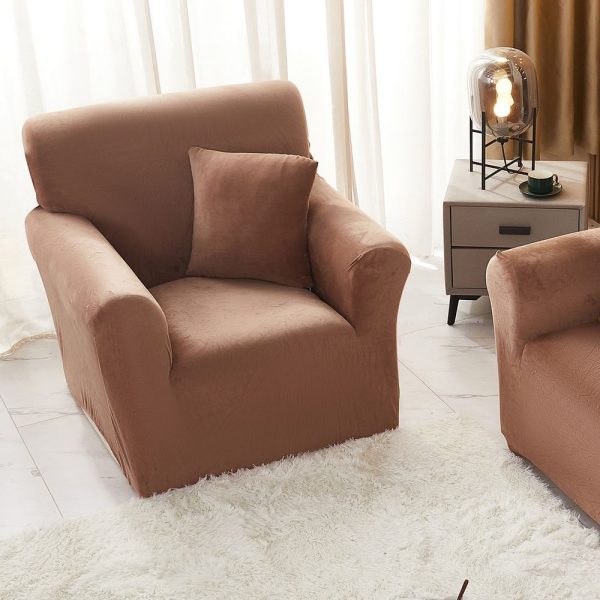 Set Husa Elastica pentru Fotoliu din Catifea + Fata de Perna, Marime Universala - Maro - PUF73194