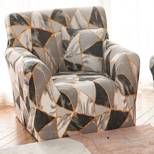 Set Husa Elastica pentru Fotoliu + Fata de Perna, Marime Universala – Grey Triangles – PUF47539-011