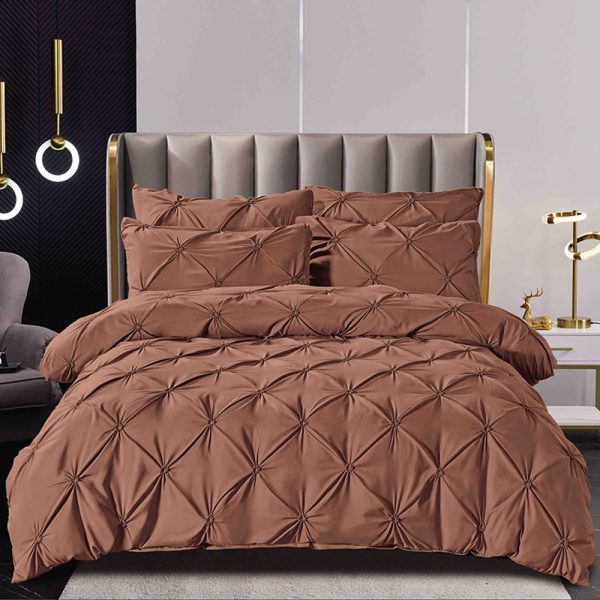 Set Lenjerie Brodata Uni, Model cu Pliuri, Bumbac Finet, 6 Piese, Pat 2 Persoane – Maro – PUF71671