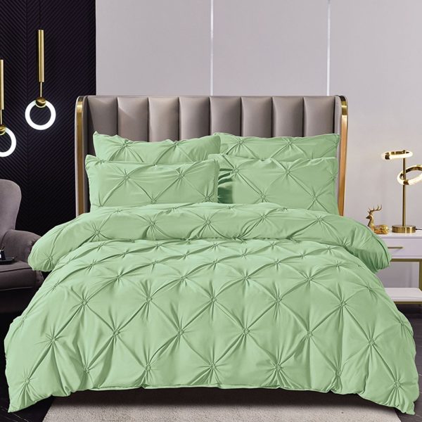 Set Lenjerie Brodata Uni, Model cu Pliuri, Bumbac Finet, 6 Piese, Pat 2 Persoane – Vernil – PUF64484
