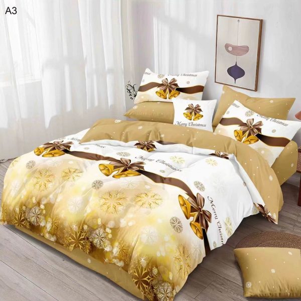 Set Lenjerie Bumbac Satinat, Model de Craciun, 6 Piese, Pat 2 Persoane – Pucioasa – PUF124354-A3