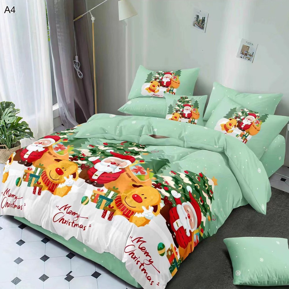 Set Lenjerie Bumbac Satinat, Model de Craciun, 6 Piese, Pat 2 Persoane – Pucioasa – PUF71713-A4