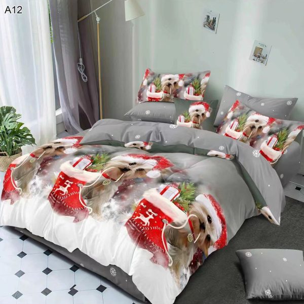 Set Lenjerie Bumbac Satinat, Model de Craciun, 6 Piese, Pat 2 Persoane – Pucioasa – PUF71722-A12
