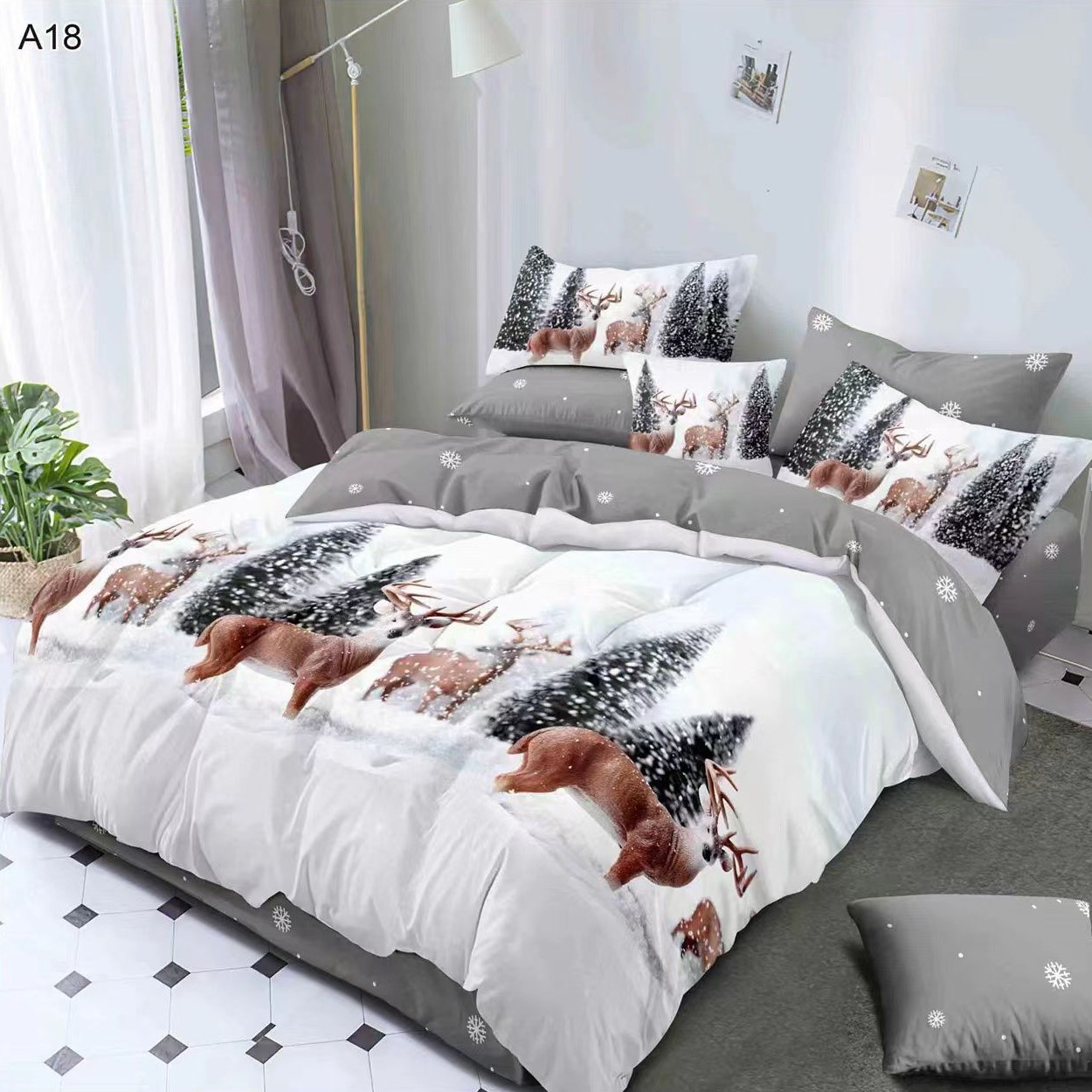 Set Lenjerie Bumbac Satinat, Model de Craciun, 6 Piese, Pat 2 Persoane – Pucioasa – PUF71729-A18
