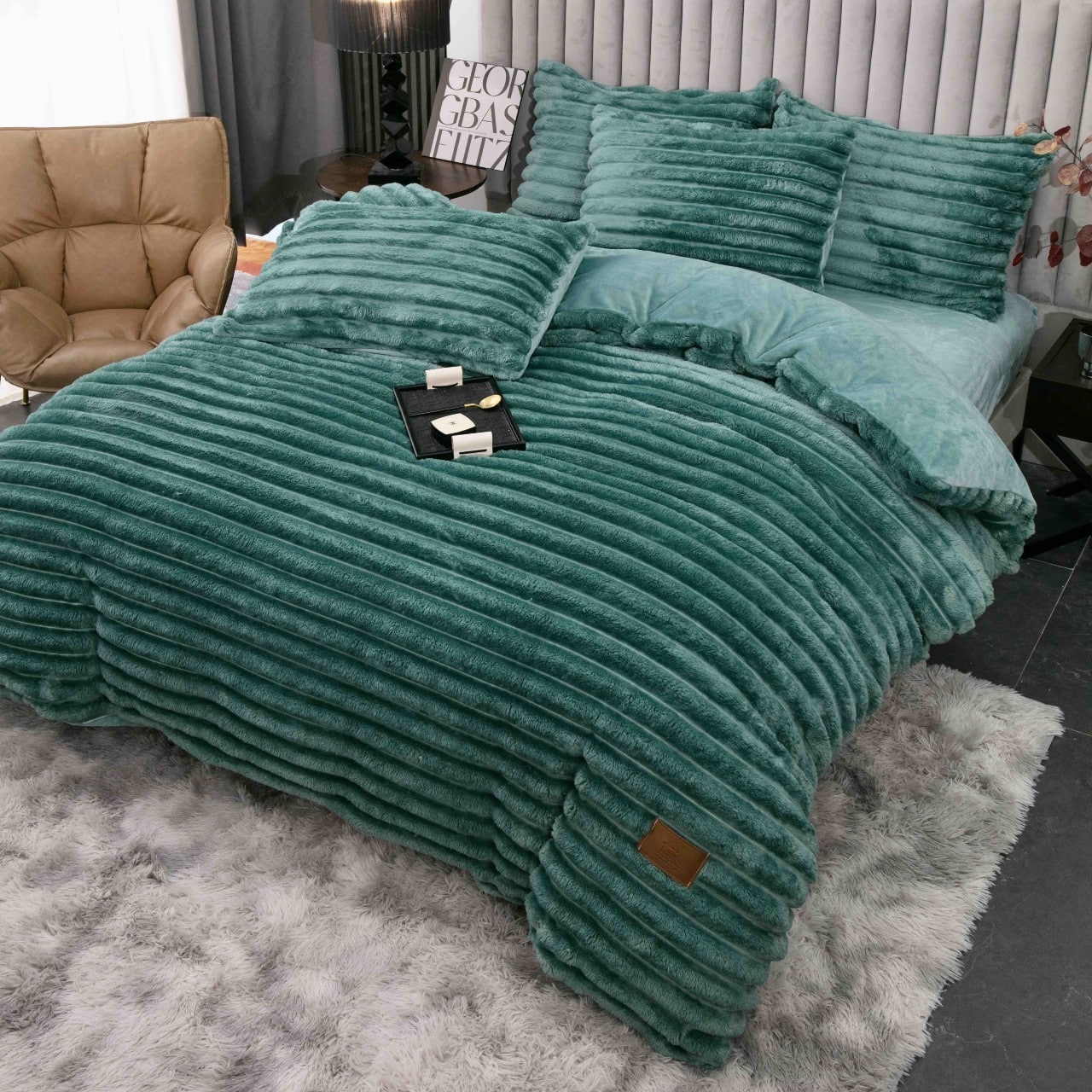 Set Lenjerie Cocolino Uni, Model cu Dungi, Cearceaf cu Elastic, 4 Piese, Pat 2 Persoane, Verde Deschis – JoJo Home – PUF179053