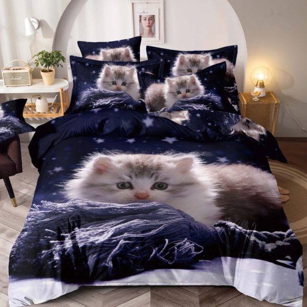 Set Lenjerie cu Elastic din Bumbac Finet, Pat 1 Persoana, 4 Piese, Imprimeu 3D Identic cu Poza – JoJo Home – PUF60446