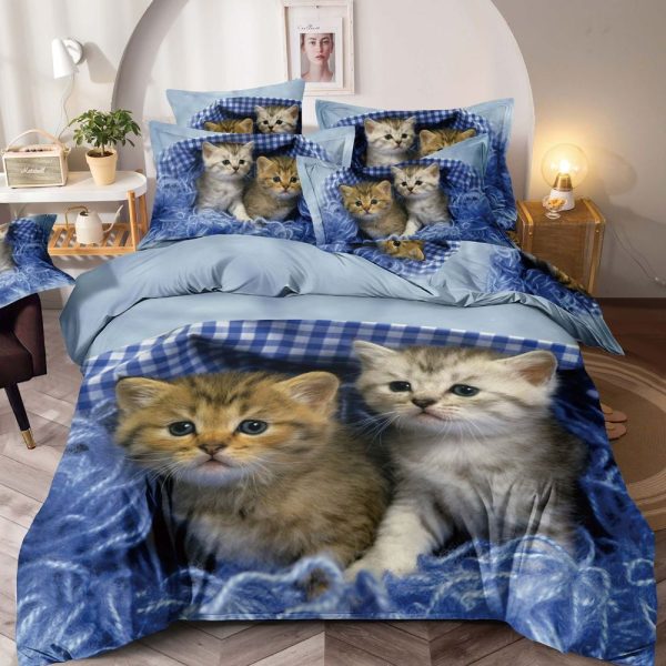 Set Lenjerie cu Elastic din Bumbac Finet, Pat 1 Persoana, 4 Piese, Imprimeu 3D Identic cu Poza – JoJo Home – PUF99909