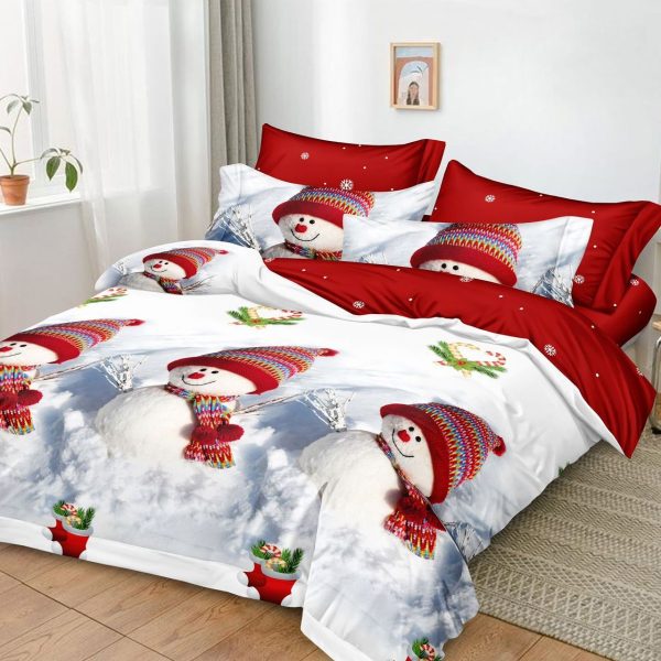 Set Lenjerie de Craciun din Finet Gros, Pucioasa, 6 Piese, Pat 2 Persoane – Classic Snowman – PUF128884-F6