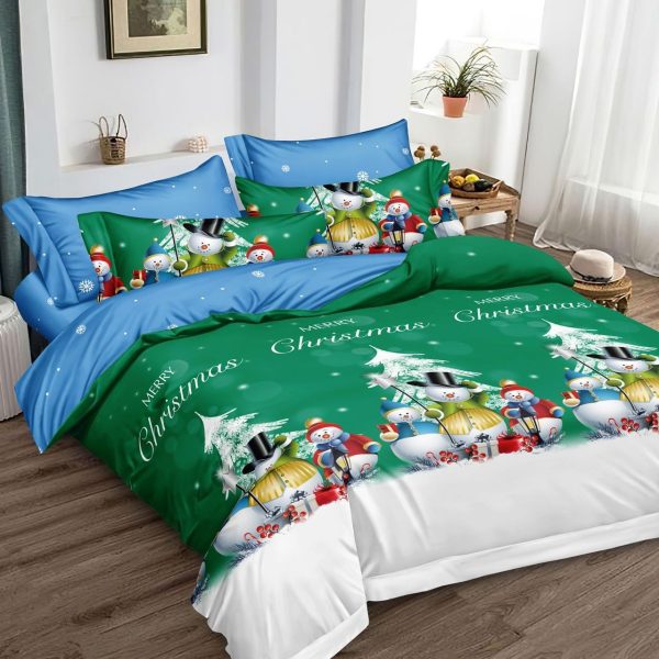 Set Lenjerie de Craciun din Finet Gros, Pucioasa, 6 Piese, Pat 2 Persoane - Green & Blue Holidays - PUF128895-F13
