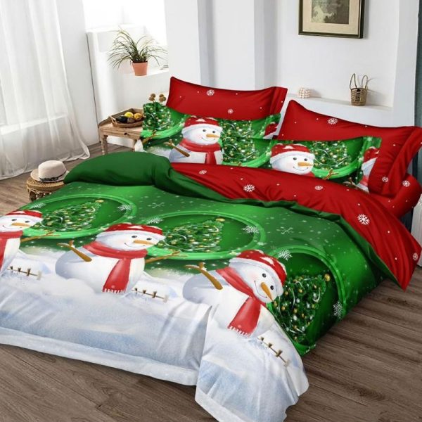 Set Lenjerie de Craciun din Finet Gros, Pucioasa, 6 Piese, Pat 2 Persoane – Green Snowman – PUF71737-F8