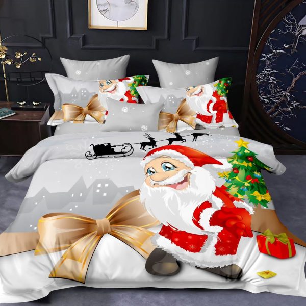 Set Lenjerie de Craciun din Finet Gros, Pucioasa, 6 Piese, Pat 2 Persoane – Happy Santa – PUF128874