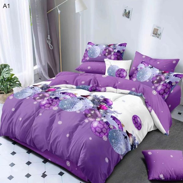 Set Lenjerie de Craciun din Finet Gros, Pucioasa, 6 Piese, Pat 2 Persoane – Purple Christmas – PUF71736